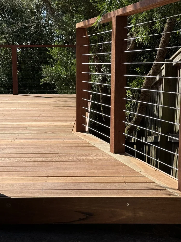 Custom hardwood and composite decks, subfloor framing, concealed fixings, edge detailing and drainage consideration